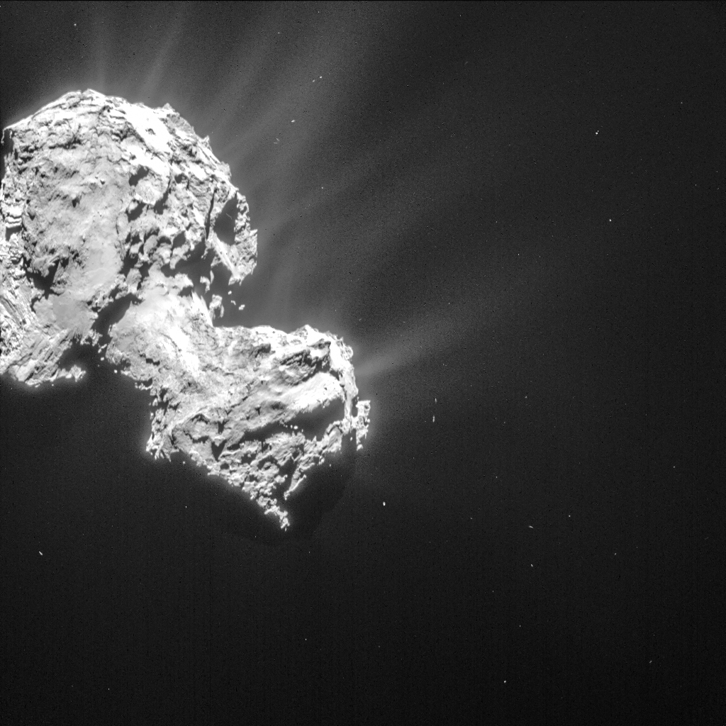 Figura 2: Imagen del cometa 67P/Churyumov-Gerasimenko Tomada por la NavCam de la misión Rosetta de la ESA. Crédito: ESA/Rosetta/NAVCAM. https://sci.esa.int/web/rosetta/