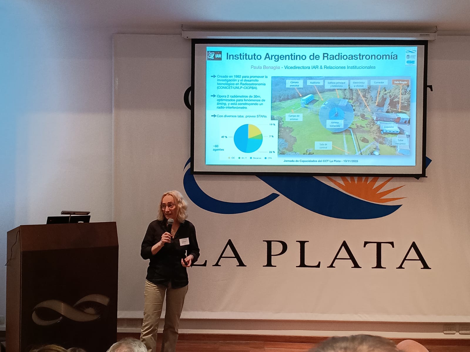 - El 13 de noviembre pasado, Paula Benaglia, en representación de la Direccion del IAR, asistió a la Jornada de Capacidades del Centro Científico-Tecnológico de La Plata, denominada «Conocernos para darnos a conocer». Durante la misma, presentó un panorama de las principales actividades que se realizan desde el IAR. El evento fue organizado por la Comisión de Investigaciones del CCT-LP y contó con la participación de representantes de todas las UE que tienen a CONICET como dependencia.